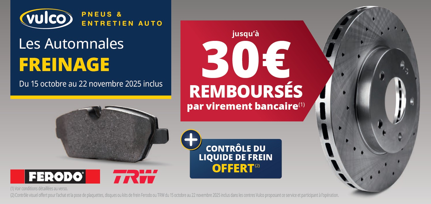 – Profitez d’une remise allant jusqu’à 30 € pour le montage de disques et plaquettes de freins